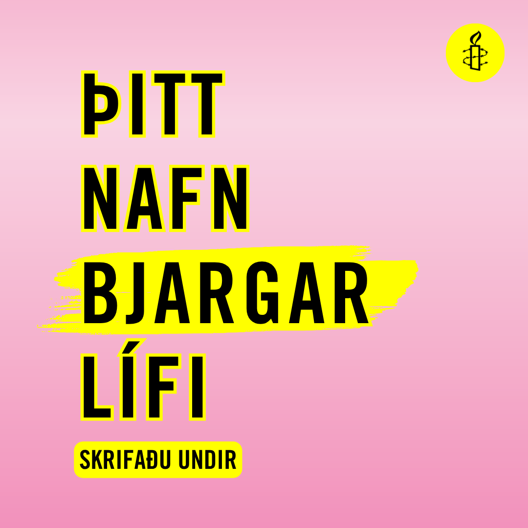 Skrifaðu undir og Amnesty á Íslandi sendir viðeigandi aðilum bréf í þínu nafni. Engar aðrar persónuupplýsingar en nafn þitt munu fylgja bréfinu á viðkomandi stjórnvöld.