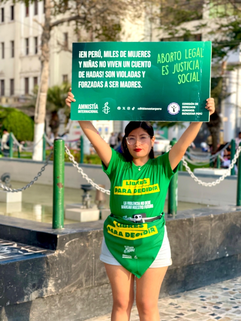 Ég er aðgerðasinni fyrir mannréttindi hjá Amnesty International í Perú og samtökin okkar tákna andspyrnu, vináttu og mannúð. Mér finnst ég ekki vera ein því ég hef aðra félaga um allt land í baráttunni með mér.