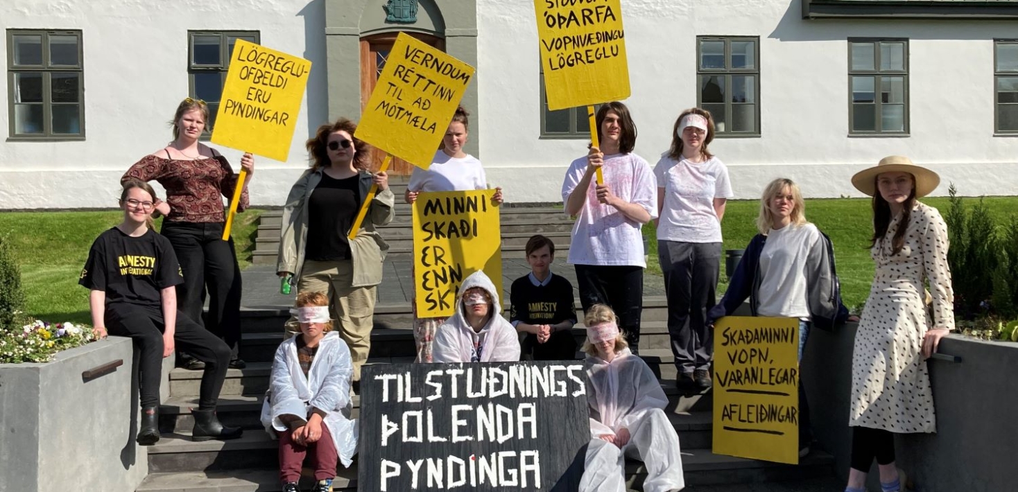 Undirskriftum var safnað annars vegar í gegnum netákall deildarinnar og í aðgerð sem haldin var 26. júní, á alþjóðlegum degi til stuðnings þolendum pyndinga. Ungliðar Íslandsdeildar Amnesty International stóðu fyrir táknrænum gjörningi til að vekja athygli á ákalli um alþjóðlegan samning til að koma böndum á löggæsluvopn og á skiltum mátti sjá slagorð um að skaðaminni vopn væru ekki skaðlaus sem er vísun í skýrslu Amnesty International „My eye exploded”.