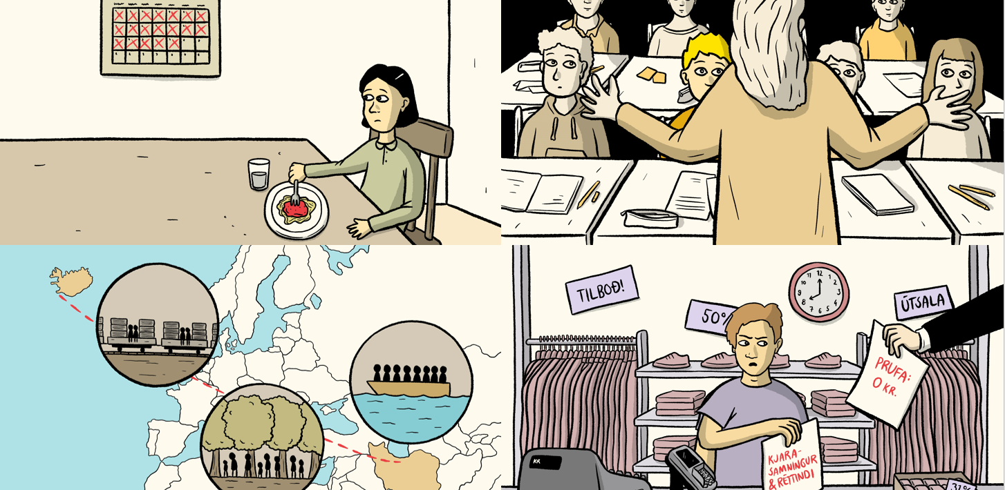 Teiknimyndirnar eru hluti af kennsluefni Íslandsdeildar Amnesty International Má bjóða þér mannréttindi? og samanstanda af myndskreyttri sögu, sex teiknimyndum um mannréttindi og verkefnum fyrir grunn- og framhaldsskóla.