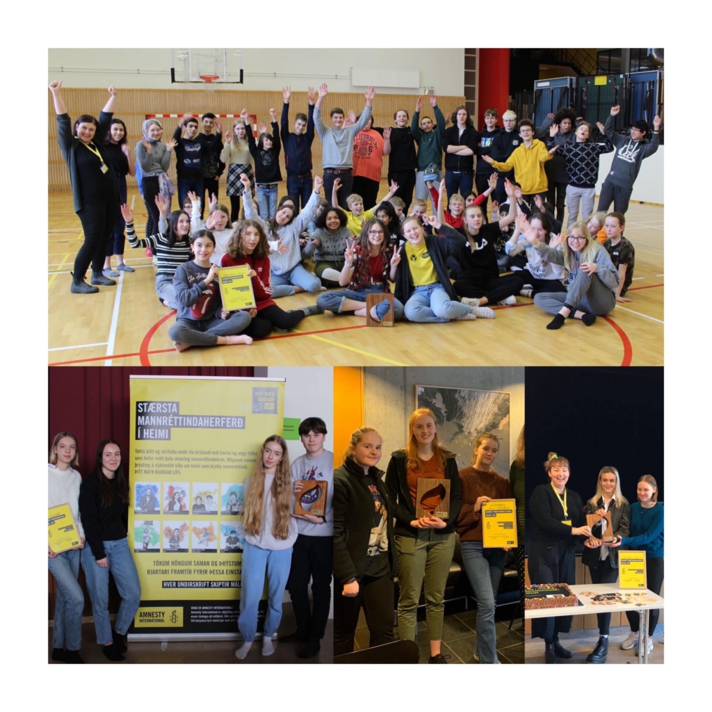 Hér á landi söfnuðust hvorki meira né minna en 86.886 undirskriftir til stuðnings ungum þolendum mannréttindabrota víða um heim þar af komu 12.840 undirskriftir frá grunn- og framhaldsskólanemum.