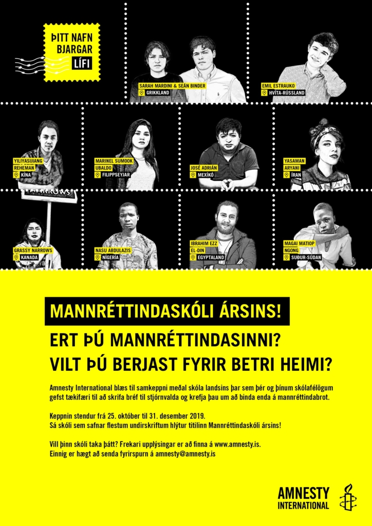 Ætlar þinn skóli að taka þátt? Skráning og frekari upplýsingar um fyrirkomulag má nálgast í síma 5117900 eða með því að senda tölvupóst á amnesty@amnesty.is
