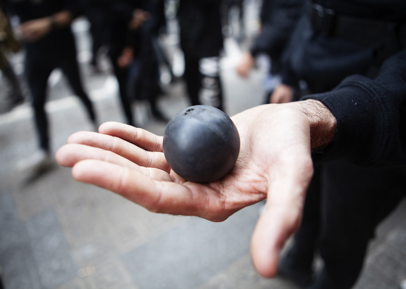 Á Spáni hefur notkun gúmmískota á stærð við tennisbolta leitt til a.m.k eins dauðsfalls af völdum höfuðáverka og 24 alvarlegra áverka, þar af 11 alvarlegra augnáverka, samkvæmt baráttuhópnum Stop Balas de Goma.