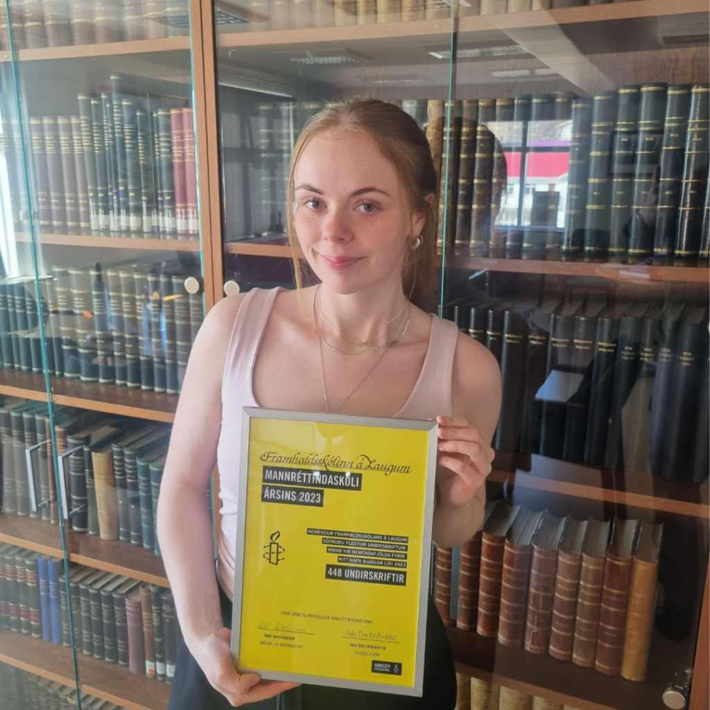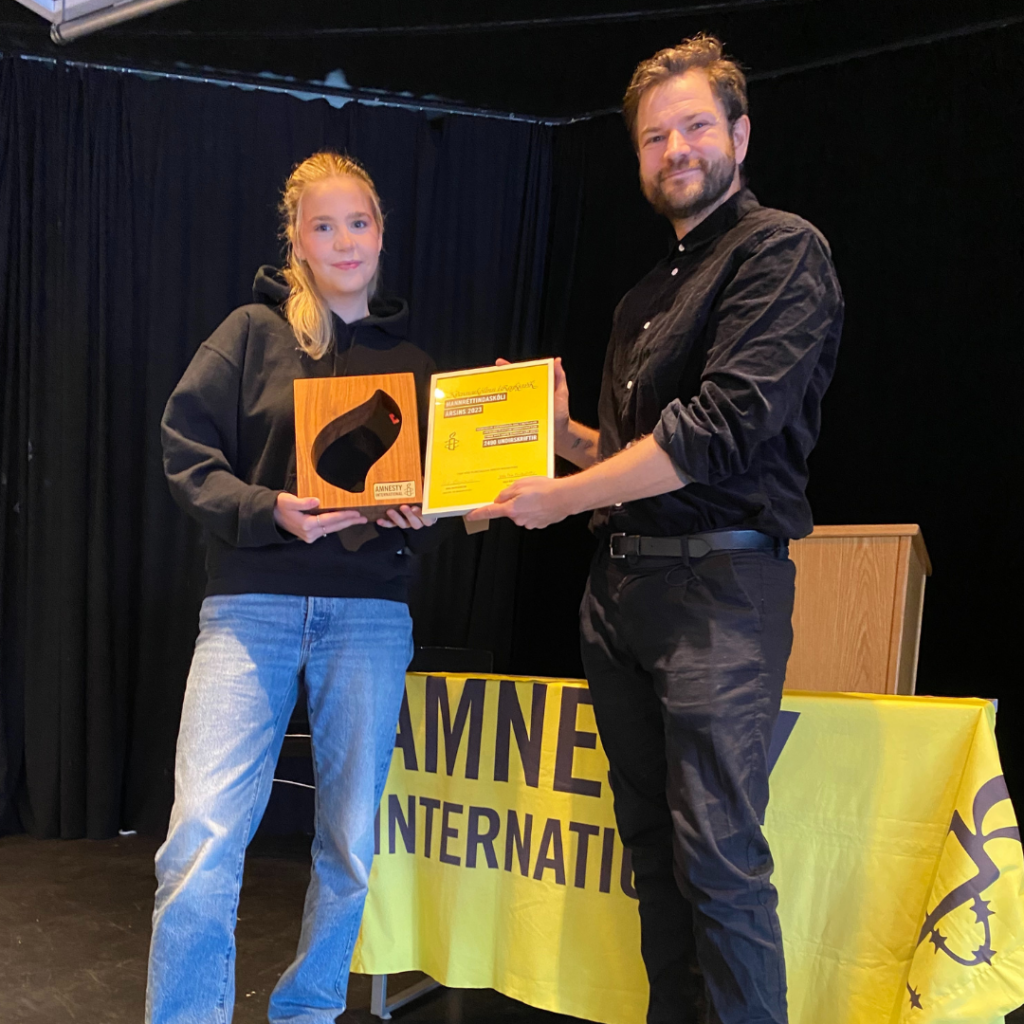 Íslandsdeild Amnesty International veitti verðlaunin í síðustu viku og óskar skólunum innilega til hamingju. Einnig þökkum við kærlega öllum skólum, nemendum og nemendafélögum sem tóku þátt í átakinu.