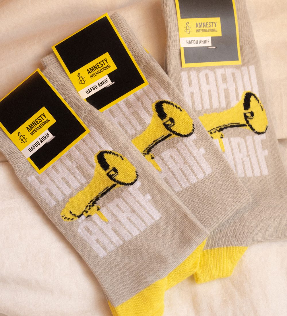 Allur ágóði af sokkasölunni rennur óskiptur til mannréttindastarfs Íslandsdeildar Amnesty International.